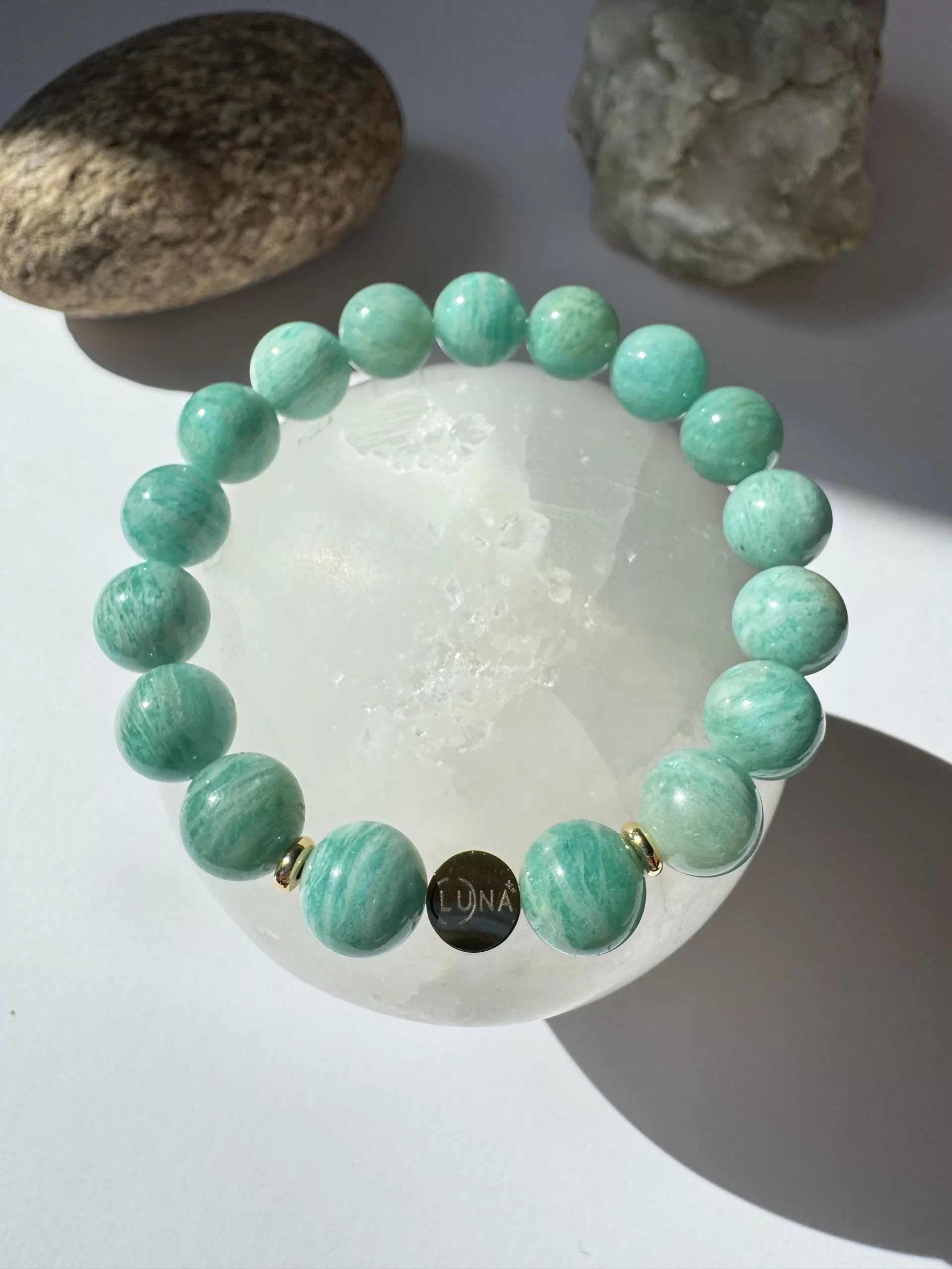 Amazonito tema – bendravimas. Jo potemė – prieštaravimų bendraujant įveikimas. Tai ramaus ir sąmoningo veiksmo akmuo. Padeda sukurti tvirtus šeimos pamatus. Sužadina fizinį aktyvumą. Tinka tiems kurių nuotaikos ekstremaliai keičiasi, kai gyvenime pilna dvilypių situacijų, verčiančių rinktis, kurie mėgsta vertinti ir kritikuoti kitus, dvasios ieškotojoms, kurie užsiima sportu ir šokiu. POVEIKIS EMOCIJOMS: Ekstremalių emocijų kaitos, impulsyvumo, nerimo, chroniškų depresijų raminimas; išmokimas be streso priimti nepatinkančias situacijas ir jų sprendimas.