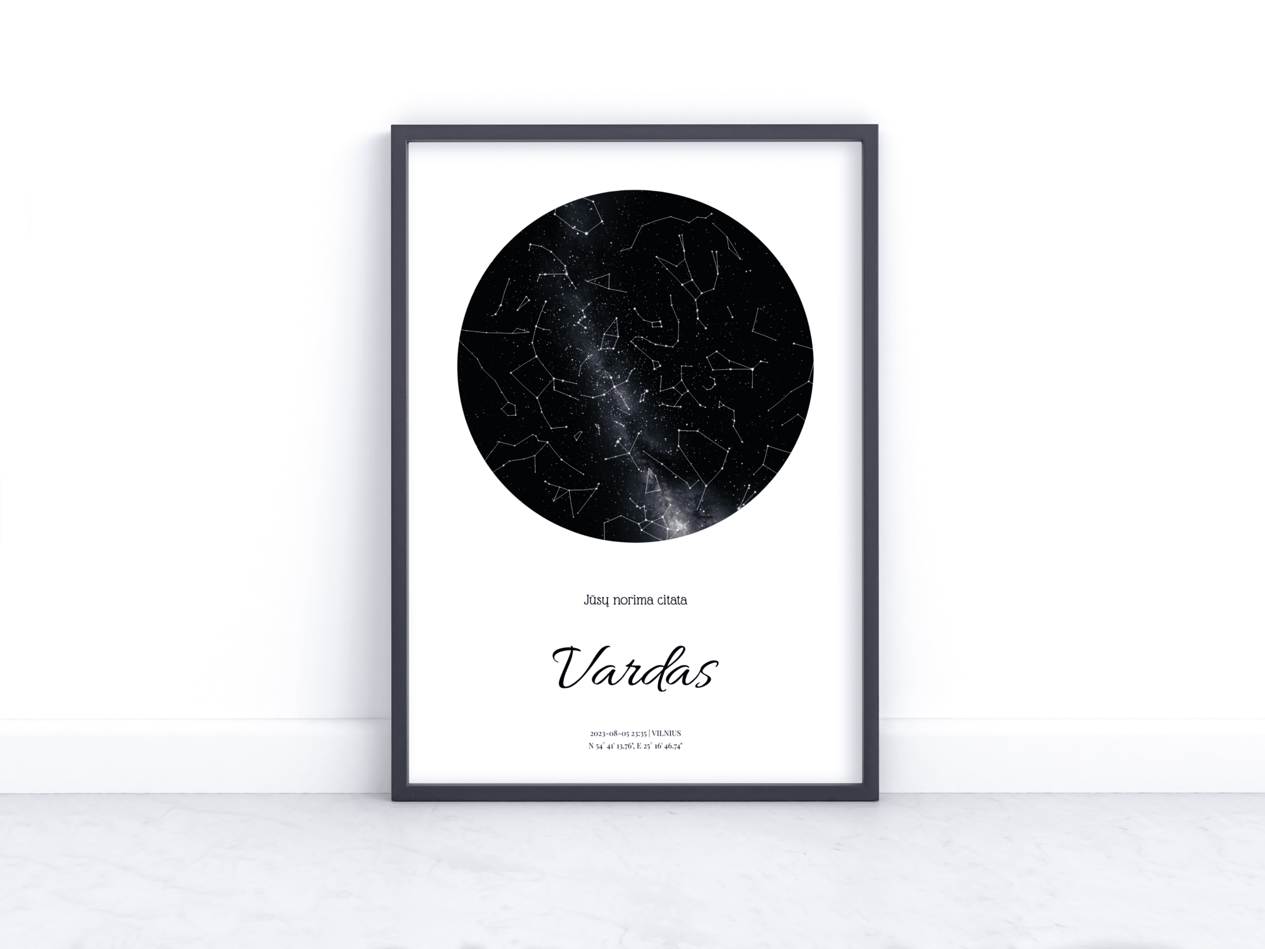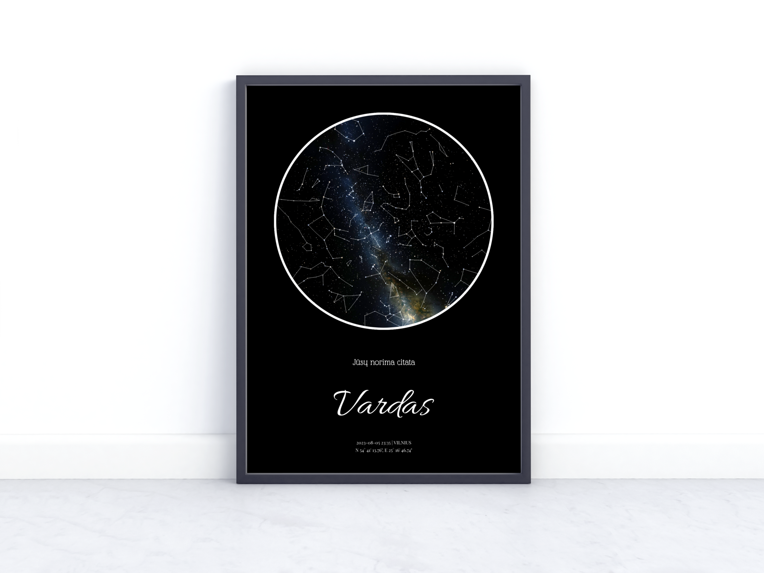 Klasikinis žvaigždėlapis, juodas, žvaigždynaiKlasikinis žvaigždėlapis – įamžink svarbią gyvenimo akimirką